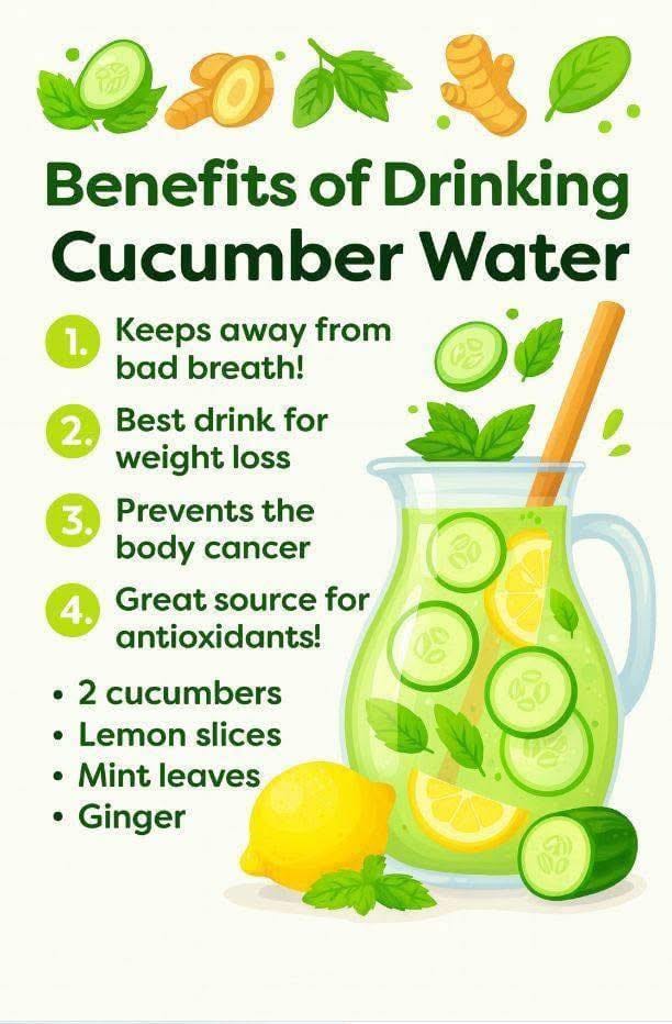Cucumber water is an excellent drink for people trying to lose weight. It has very few calories and helps you feel full, which can reduce unnecessary snacking. Drinking it instead of sugary drinks also lowers calorie intake.