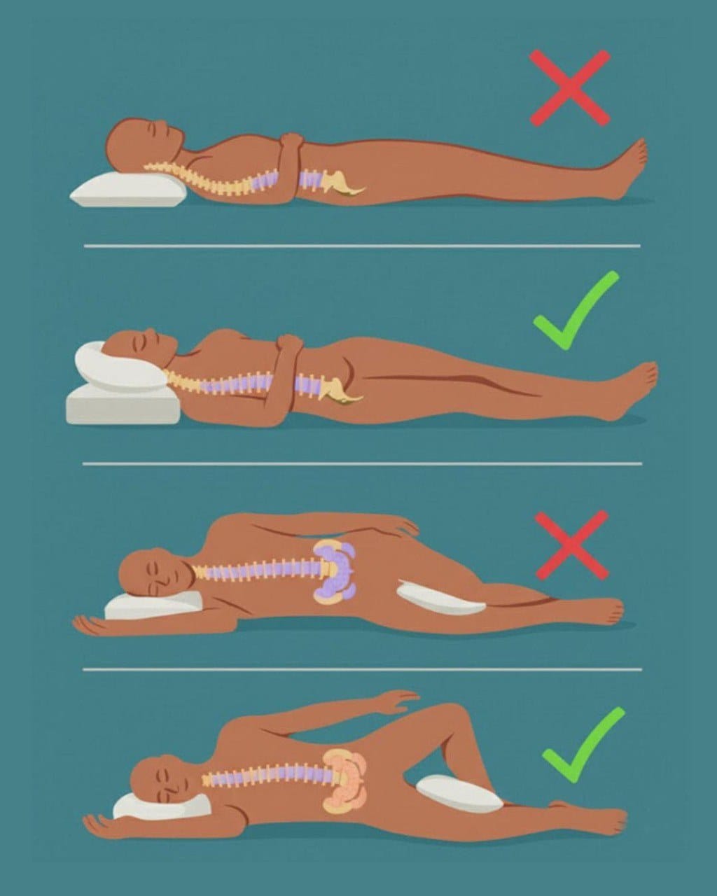 The image above shows exactly what you should and shouldn’t do when it comes to sleeping positions.