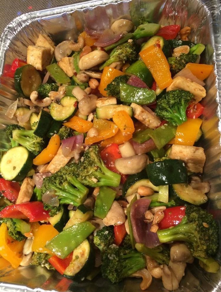 Add softer vegetables (bell pepper, mushrooms, snap peas, onion) and cook another 2–3 minutes.